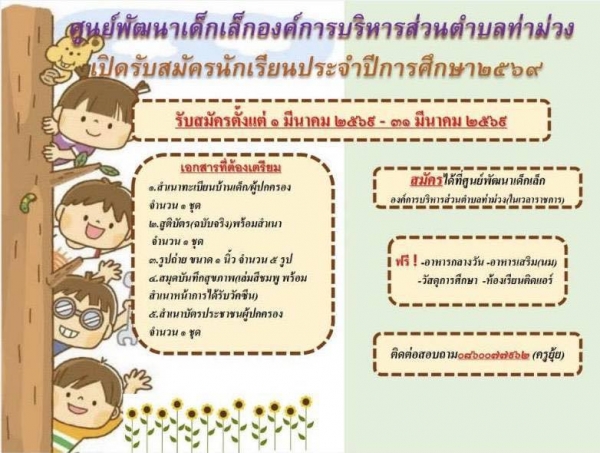 เปิดรับสมัครเด็กนักเรียน อนุบาล 3 ขวบ ในปีการศึกษา 2569