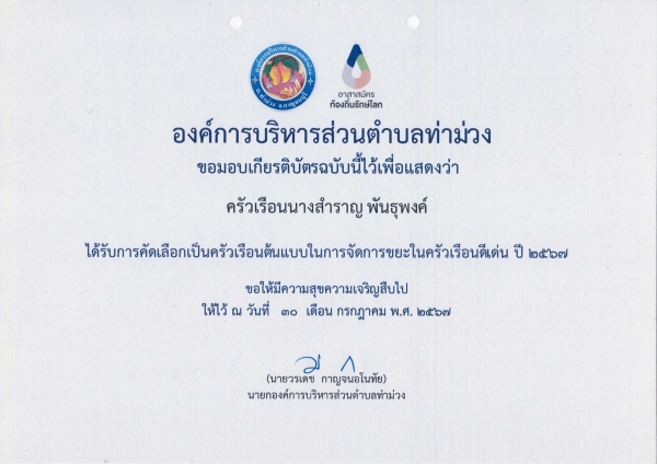 ประกาศยกย่องเชิดชูเกียรติครัวเรือนในการบริหารจัดการขยะ