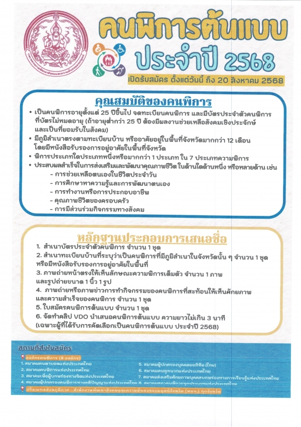 การคัดเลือกเป็นคนพิการต้นแบบ ประจำปี 2568