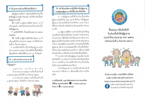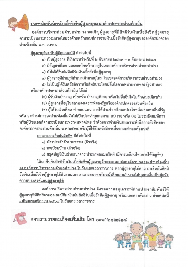 ประชาสัมพันธ์ เชิญชวนผู้สูงอายุที่มีสิทธิรับเบี้ยยังชีพผู้สูงอายุ ประจำปีงบประมาณ 2570